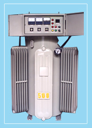 The induction voltge regulator has it s main structure similar to an induction motor's stator with primary voltage and rotor with secondary voltage. Both the stator and rotor have coils wound on them. A.Magnetic rield is generated by applying a rated roltage to rotor coils for mutual induction with stator coils.Its output voltage can be adjusted by rotating the rotor by a driving motor, to change the phase angle relative